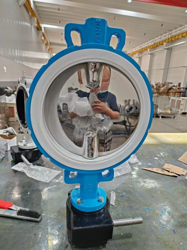 Yeni tasarım PTFE koltuklu kelebek vana, cilalı SS316 disk, dişli operatörü.